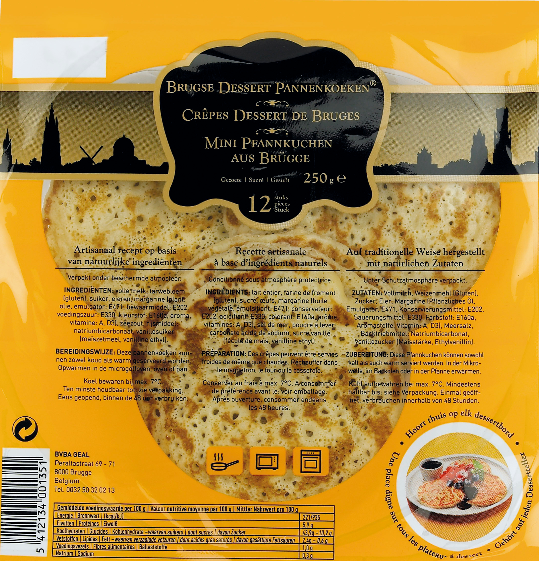 Onze Brugse Pannenkoeken worden met liefde en vakmanschap gebakken, volgens een traditioneel recept dat al generaties meegaat. Zoals het oorspronkelijk recept van moeder Annie wanneer De Brugse Pannenkoeken ontstonden in de garage van het familiebedrijf dat het op vandaag nog steeds is. We kiezen bewust voor kwaliteitsvolle ingrediënten en een zorgvuldige bereidingswijze, waardoor elke pannenkoek die typische huisgemaakte smaak en zachte textuur krijgt. Geen industriële massaproductie, maar ambacht op hoog niveau. Dat proef je vanaf de eerste hap.